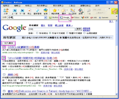 除了這些以外,NuWeb和一般IE與Firefox瀏覽器不同的是,它試著在網站上增加加值服務,來加強這種「一切收藏在自家電腦」的功能。目前已開發的有Google、Yahoo!、MSN、Ask、Answers、Wikipedia、Baidu,只要使用NuWeb在這幾個站搜尋到喜歡的內容,按一個鈕,就可以全部下載收藏到電腦裡;吳老師視這功能為「為網站加值」,幫網站提供更多東西(這部份說不定未來開放給所有網站開發者都可自行添加),也等於「為使用者加值」,因為使用者可以把網路上一些暫時的內容(如明天就被取下的新聞)收藏起來。