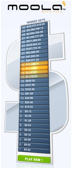 這裡有三個重點,第一是「超大的夢想」,網路創業家從前常想出一些幫網友「賺小錢」的點子,譬如號稱每點進一個超連接就可以收到錢的,或是看一段影片就可以收到錢的,但事實證明網路上的使用者,根本不屑拿這些「點10次才拿1塊錢」的「小錢」,對他們而言,這種錢雖然馬上入手,卻不夠意思,不值得抬抬他們纖纖的玉手、轉轉他們尊貴的眼球。Moola其實只是「幫你賺錢」網站的變種,但不同的是,它沒馬上給小錢,而是給了一個超大的夢想,和其他網站立刻有了不同的吸引力,這和大樂透有異曲同工之妙。