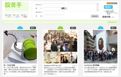 苦來苦去,「設苦手」這個神秘的網站,其實就是一個網站設計師為自己(及其他設計師)量身訂做的個人專用的「我的最愛」的書籤收集網站,分成「新聞、人物、種子」三大區塊,新聞區可收集最新文章,人物區可收集其他設計師的作品與簡介以研讀學習(或讓設計師自己擺出作品自我行銷),種子區則是收集了其他部落格的RSS feed住址。Ken本身是網頁設計師,收集上述的「新聞、人物、種子」三方面的資料,對他來說滿重要的,可是,Ken覺得其他的書籤收藏網站都太「重」了,提供太多功能,一般書籤網站又常常以文字為主、圖片為輔,沒圖也無所謂,像Ken的設計師注重的是視覺思考,用圖像來記憶,一堆文字讀了就忘,使用起來很沒感覺,所以「設苦手」網站特地將所有的書籤,皆用大圖片的方式來代表。Ken表示,一開始設苦手只有新聞和人物區,等到有網友問Ken他都去哪找資料,Ken索性再開「種子區」,將自己在訂閱的所有RSS一併全部分享出來。