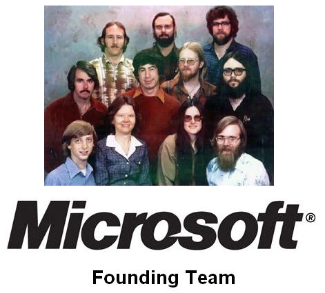(附圖為微軟的創辦團隊大合照,紅圈者為比爾蓋茲)