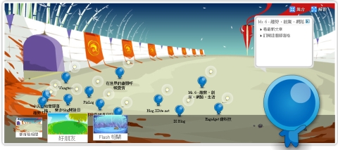BlogLive是Yam天空這周推出的一個重大新產品,正式一點的來說,它是一個「圖像型的RSS訂閱、閱讀器」,但與其這樣硬邦邦的稱呼,不如稱它是將部落客「擬人化」的大平台,或如它自己形容的──「活生生的部落格社交網路」,請看這裡這裡示範。BlogLive是一個置於部落格版面裡的插件(plug-in),畫出一個草原,有很多小動物在裡面走來走去,猛地一看有點像台灣的迷你窩,但他們想藉這圖像介面做的事,顯然又遠遠超過迷你窩的聊天和虛擬裝飾。