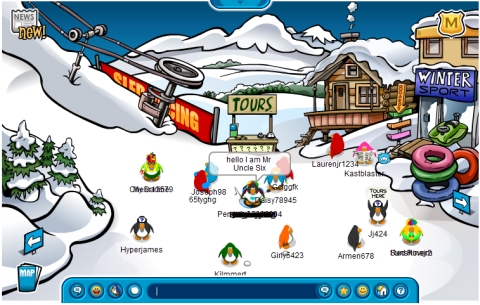 Club Penguin的目標使用者是六歲以上的孩童,很像之前寫過的「芭比娃娃.com」、Cyworld、Haboo Hotel 、Gaia Online、Meez、Zwinktopia、Runescape、Stardoll、Web Kinz、Neopets,利用flash介面打造出一個多彩繽紛的虛擬世界,讓這些小小會員在裡面交流,從加入會員界面開始,就大量使用炫目的flash,同時還技巧性的教小小會員「填入你父母的email住址」,讓爸媽來親自確認允許小孩可玩這遊戲,也順便杜絕重覆會員申請。每次登入,就像玩線上遊戲一樣必須先「選主機」,然後進入一個由flash營造出來的小世界中,和其他「企鵝」聊天,並且可以參團、買東西、打扮企鵝等若干事。迪士尼併購案顯然已衝爆了Club Penguin的伺服機,晚上尖鋒時間速度非常慢,試用者要有耐心。而Club Penguin確實打中了某些小年紀或家庭媽媽的「甜蜜點」,美國有個部落客說他老婆超喜歡Club Penguin,並悉心寫了一篇感想,假如老婆都在用了,這就一定是個好玩得會爆紅的作品,和Wii創造人宮本茂說的如出一轍。