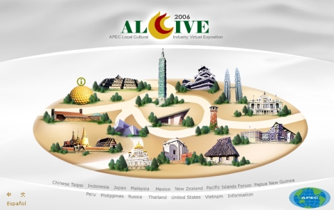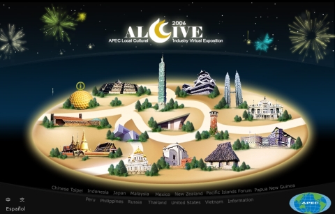 ALCIVE 2006的中文全名是「亞太虛擬工藝博覽會」,是一個完全透過網站、完全沒有實體會場的「線上博覽會」。由台灣這邊的中小企業處向APEC提案、主辦,從去年八月開站,經過一年開放,於上周到了終止,原本正想寫到某個關於線上博覽會的點子,剛好碰到這個題材便索性借它開場。看看這個ALCIVE站,在首頁就精緻描繪了代表各個國家經濟體的代表建築,讓它們一起佇立在同一座公園裡,還會依白天與晚上顯示不同天色。點進去可直達各國的「線上展館」,欣賞各個國家的傳統工藝作品,若有興趣購買或一探究竟,可直接透過大會提供的住址聯絡。這次參展的包括中華台北、印尼、日本、美國、墨西哥、馬來西亞、紐西蘭、巴布亞紐幾內亞、秘魯、菲律賓、俄羅斯、泰國、越南及太平洋各島國,據說大會主辦單位要求每個會員體都得貢獻500樣產品,若這個目標真有達成,則ALCIVE等於累積了7000樣以上各式各樣的各國特色工藝品在線上巡展了一年,應該是一個比旅遊網站還精彩的超豐富內容網站?