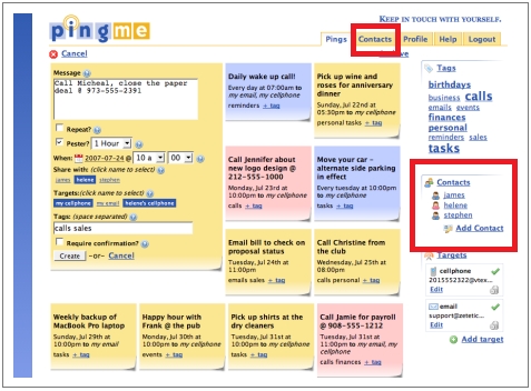 第一種「甜蜜暴露」:個人生活點滴──曾經,我們一回家關上門,不希望其他人再看到任何門內發生的事情。你說,咦,有人不是喜歡用webcam把自己生活現場播放給全世界?那種人三千萬人只佔0.5個,遠低於被雷劈中的機率。你說,現在很多人不是喜歡用Twitter碎碎念?但Twitter的使用情境是寫作者知道這是在和公眾說話,語調與內容就算再碎言碎語也是已經經過潤飾。我這裡講的「個人生活點滴」的曝露,是將原本應該在最放鬆的家裡所處理的一些資訊,直接曝露到網路上。比如最近有個新的備忘錄網站PingMe,使用者可透過email或簡訊記下今天要做什麼事,然後PingMe會準時email或傳短消息提醒你,不過,PingMe的口號「What *should* you be doing?」讓人想起Twitter,沒錯,PingMe除了讓你貼一大堆ping以外,還有一個極重要的元素就是「Contacts」,讓會員加入一些朋友,直接將所有的ping都分享給他,你會說 朋友幹嘛和你一起分享備忘錄?但這些「我今天要去洗西褲」、「我明天要買給小芳生日禮物」,在自己眼裡只是順手的「提醒」,無糖無味,但看在別人眼裡卻是四川麻辣鍋,重鹹又養眼,有趣至極!只要自己不在意,給別人養眼一下又何妨?