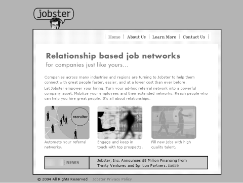 仿獵頭公司來「先一步鎖定隱性的、未開始大舉求職的夢幻員工」,為雇主服務,大約在2004年,就有兩個以上的網站早就開始做了。一個是StaffITnow,一個是Jobster。尤其是Jobster,這個網站當初出來還真的讓許多人興奮了一陣子,記得它用美式漫畫的方式,畫出了現今市場的景況:「現在的履歷表,只涵蓋了所有在職人口的不到5%,而且不見得是最優秀的5%。」