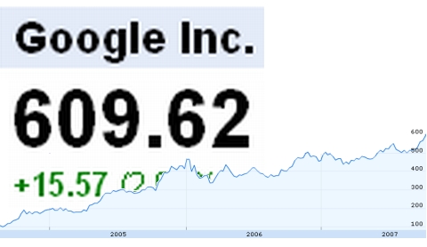 昨天Google打破自己記錄,股價衝高至600元,距當初甫上市的85元以來已漲七倍,本益比已達嚇死人30~50倍。算一算GOOG股價今年來已漲了近30%,相較之下,它的老朋友Yahoo!股價卻「只」漲了10%左右,於是,華爾街分析師Jeffrey Lindsay建議,Yahoo!應該拆解成數大塊,目前Yahoo!股價為28元上下,分析師說,若將陳列式廣告部門(display ad)、搜尋部門、會員部門三個部份自原公司獨立出來成一家新公司,新公司的股價可達39元。而如果再將Yahoo!的關鍵字廣告生意外包給Google做、削減全公司50%員工等等大整頓,股價更可達45美元。這個「建議」一出,Yahoo!股價竟應聲漲了2.7%。