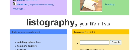 五、超級「簡化」的社群:老外有些人喜歡寫list,所謂list就是「一點一點的短句」,電影「雙面間諜」(The Interpreter)中也有一個角色有這樣的興趣。有一個社群網站叫Listography,就是強迫每個人將內容物簡化為list。看看它的個人首頁,可以發現它不走社群網站的路,而是用社群網站的「皮」,然後無論是分享音樂、電影、俊男美女、好喝好吃的食物飲料,只要製造一個「folder」(也就是社群網站的「元素」),全都是用簡單的list,也因為list,讓它提供了一些其他社群網站所沒有的奇怪元素,看得不太懂,可是真的超簡化,也刺激會員分享更多東西,提高了「供賞比」(Sharing-to-Watching Ratio)。