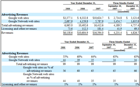 […] 观看这些报表中的历年数字,是对google成长史的一种回顾。另外,对财报中各个小项的分析也能得出很多有意思的结论。比如Mr.6先生关注了Adsense广告收入在总收入中的比例一直呈下降的趋势,这一方面是市场激烈竞争的结果,另外也是google控制无效点击的一个反映。 […]