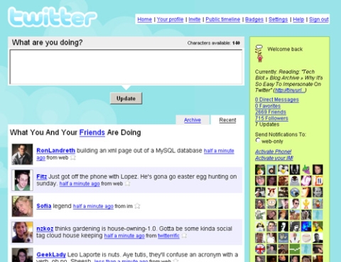 […] Twitter出包又增資,Web 2.0全民化的殺手? – 看來mr.6對twitter很不樂觀→但說實在的,這東西就是拉幾個朋友進來用就可以玩得不亦樂乎啦,至於她們要怎麼賺錢喔?應該不用我傷腦筋,他都找 到金主啦…重點是先把服務整個弄穩吧…而且我對於他所提的friendFeed的興趣不高→twitter的有趣之處就在於他很簡單使用,如果又要開始綁 東綁西弄一大串,那我幹嘛還要twitter,重點是我朋友不多來著… […]