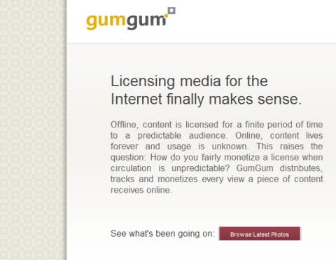 兩個月前,洛杉磯地區的新圖庫網站GumGum開站,以一種極有創意的「Flash秀圖、CPM收費」來授權圖檔,受到許多部落客的注目如這裡、這裡、這裡。當時GumGum還是靠創辦人自己從口袋掏出的資金在營運,最近,他們在募資之餘,也於上周透露,目前GumGum圖庫的照片量,已在短短一個半月內吸引了高達100萬張。