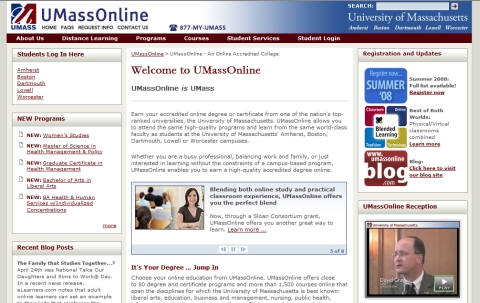 但,最近接二連三,網路界開始聽到一些來自於線上學習廠商的「捷報」。上周,UMASSOnline,也就是麻州大學的網路分支,傳出今年的學生量大增。它於2008年的線上課程的報名數,比去年狂增26.2%,達到33,900人。這個數字是連續三年增加的結果,已是正式學生的好幾倍;多出來的這一些人,再加上學費的調整,也為這間大學多帶來近900萬美元(3億台幣)的收入。