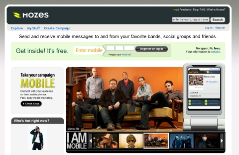 Mozes決定主攻「樂團」與「歌手」。據報導說,當時有個樂團叫Dustin Burke Band,在一個地方開演唱會,一共有大約5000名民眾參加。樂團把現場氣氛搞得超high。假如主唱在這時候告訴觀眾,回家記得到dustinburkeband.com,找尋更多的資料,群眾回家以後,十個有十個都忘光光了!但假如樂團此時告訴大家,現在!就拿起手機!輸入「DBB」(樂團名的縮寫),然後傳給「66937」!你們就可以馬上得到一首免費的MP3,下載到你的手機裡,可以設成答鈴喔!當天現場,據說真的就有500個人真的就傳了簡訊出來,佔現場的10%。