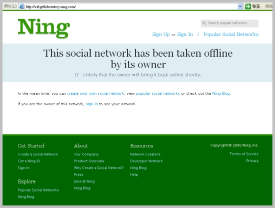 整件事的起因,就在周五,完全無預警的情況下,Ning突然停掉了所有「插件實驗室」的插件。你也知道,一個網站沒有插件,就算沒有當機,有些功能就無法展現出來,就算功能都沒有差太多,也會長得很醜。Ning旗下的社群網站開始抗議!