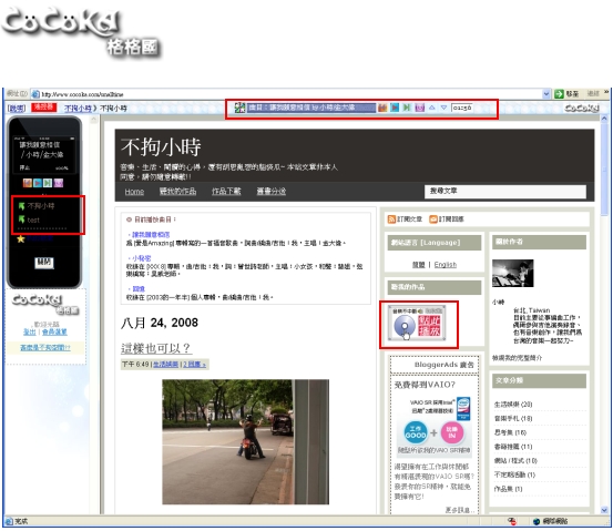 仔細看,就會發現格格國的這個創意的特色。它等於是讓部落格站長自動「繳械」,讓它們的網頁全部繳來讓「格格國」統一處理,放在格格國的框架之下。只要所有網址都是那個網友的,格格國的服務就應該不會有之前FunP的iframe爭議,而格格國的服務或許也能比一般部落客插件的影響系數還大,因為部落客一用,可能就是在自己好幾個子站同步使用。問題就是,要用什麼理由,才能讓這些部落客或網站站主願意讓自己的眾多子站被你一次全部「綁架」?格格國顯然用的是「音樂不中斷」來切入,令人還想再想一想,還有哪些其它的「理由」可以這樣做?