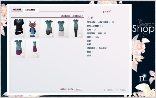 這個網站所有頁面都是flash製作,以這個配衣的主題來看,是個正確的選擇,我不確定是請模特兒一一拍攝,還是請網拍業主自行提供照片,但是「D+」有美術後製的參與,讓照片們在切口的部份可以「對齊」,可以套上它的搭配系統,這樣就夠了,使用者可以自由的搭上衣、下褲、帽子,幾十樣商品,就可以配出好幾千種的搭配,和之前所寫過的那個「KnickerPicker」一張一張拍的做法比起來,有效率多了。特別的是,「D+」一開始目標就是一個跨品牌、跨賣場的搭配網站,由於專司「搭配系統」,因此和各大論壇bbs時尚版、時尚網站、時尚雜誌網站以「資訊」為主的有很大差別,和其他網拍業者也不會產生衝突,反而還有幫小咖拉抬的效果。目前從商店廣場頁中也可看出,「D+」已和蘋果星沙、MAZ、MIYSTE、芭比培果、Wiwi Shop、琪琪箱子、泡芙妹衣著館等網拍業者達成合作,算是一個很不錯的開始了。這邊還有一篇「「D+」使用說明」,指出了直接從商店開始的使用流程。