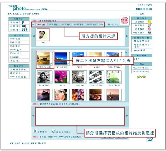 YouGotPhoto是優加數位(UGA Digital)的產品,由一位帥哥Nick Fothergill上台,台風非常穩健,重點也非常清楚,觀眾印象想必都很深刻。金髮碧眼的他來自加拿大多倫多,在台灣已住七年,而他介紹的這個網站(或應該說這套「bundle」),做的是從「線上」來「匯整」到「實體」的一個產品,如這頁說明,你在線上有很多地方如Flickr、Picasa、Facebook都有照片,只要透過這個YouGotPhoto.com的網站的簡單的介面,就可以透過這些網站的API「匯入」這些照片,直接將這些照片選到下面的框框,按下「送出」,這個伺服機就直接透過網路,送到你指定的數位相框的接收器,在數位相框端,也有一部份的YouGotPhoto的配合軟體,在接到這些照片後,直接在數位相框播放出來。播放出來後,還可以選擇要將哪些照片選成「favorite」,再透過互聯網傳回網頁。