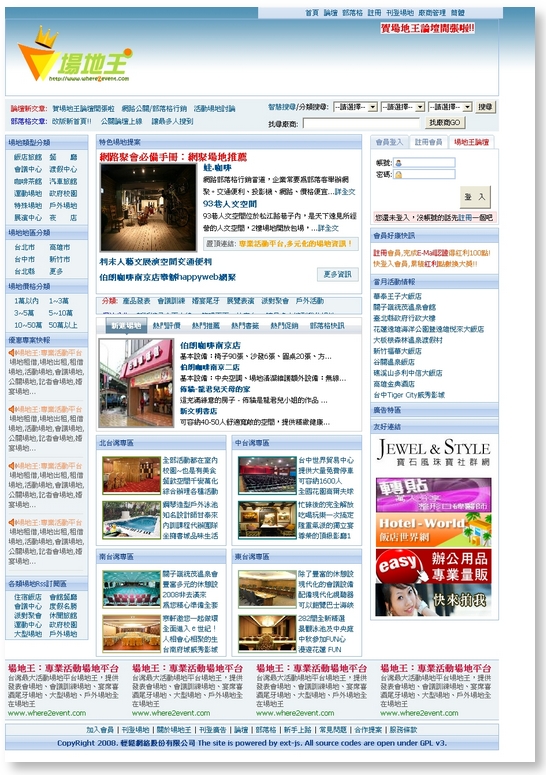 「場地王」是一個已開站四個月左右的商業網站,創辦人Willy與一些Web 2.0網站都聯絡過,網路人對他應該並不陌生。Willy透露,開站四個月來,目前場地王每日Page View為3000~4000左右,拜訪人次約800人。