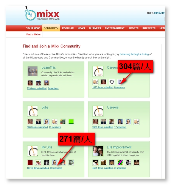 一、群組不重要,要讓群組變成共同努力的「team」才重要:這幾個月來和Mixx的流量爆升同時發生的唯一一個和聚眾有關係的新功能就是「Mixx Communities」,它和這次的成功,一定脫不了關係。Mixx Communities其實就是一般網站都會先做進去的「群組」功能,大家對某種文章有興趣,就加入同一個群組,大家一起找來這種文章、推這種文章、在裡面交流。這點,RWW卻僅僅點到後,就沒有再提,我猜想是因為Mixx Communities裡面的member其實不多,最大的幾乎只有300多個會員,大部份的都只有20~50個會員,稍微計算了一下目前共有的群組總數大約是在「幾百個」左右,換句話說,加入群組的總會員數,可能就只有「幾萬人」爾爾,而別忘了Mixx的流量是多了「幾百萬人」,所以,群組好像不是重點。但是!有一點!他沒注意到!我發現,在Mixx Communities的推文總數,和該組的會員數的比率值相當驚人,顯見這些人在群組中,並不是「對內互相交流」,反而比較像是「一起努力對外找東西」。譬如,「Wink Wink」這個群組共有54個會員,卻募集來了3萬6千6百一十七篇新文章,平均一個會員就幫忙找了了678篇新文章,另外一個群組「Fast Lane」也是,擁有152個會員,卻募集來了65,663篇文章,平均每個會員幫忙找來431篇新文章,單單昨天一天靠這個群組就多出了503篇新文章!這樣驚人的比率值,在Mixx的群組中處處出現,而這種群組很像之前寫的「Team」的新社群概念,台灣團購網站「ihergo」就充份發揮了這點,現在Mixx顯然也受惠於「它」,至少,在新的文章方面,選項非常的多,各組人馬分別選出最棒的,更多就變成了更品質、更精華。
