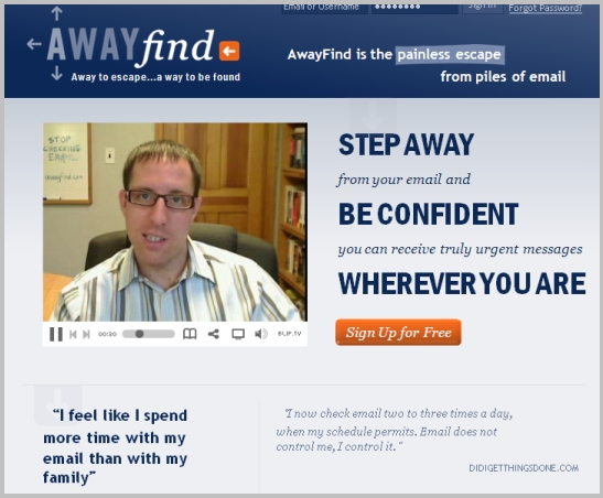 AwayFind認為,許多秘書所做的事情就是簡單的「幫老闆接電話,禮貌的問對方一些資訊,再一起向老闆匯報,由老闆自己決定要不要回電、什麼時候回電」。如果把這種秘書功能「移駕」到email上面,那,只要一個精心設計的「表格」即可。