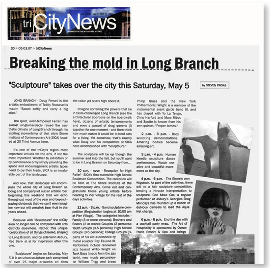 1. 有很多大型報紙/新聞都走國際化, 其實有否想過, “地區專注化" (唔記得在那看過…) 可能才是他們其中一個出路? 畢竟, 人們關心的, 往往都是自身的, 後才是國際的. 而這小報應該正在做 (focusing on the arts, culture and politics in eastern Monmouth County)