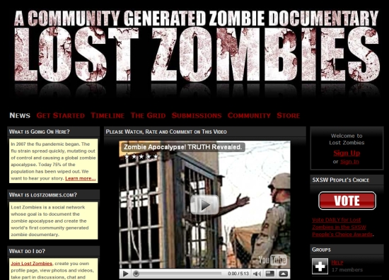 看看這個「LostZombies.com」,早在去年五月它就創立,已經證明了它真的「穩贏不輸」。看,它也不必長得多大,也不必限定「真實」(他們說這不叫documentary,而是「mockumentary」,比比看誰比較會改圖、添料),就可以一直不斷的上媒體、吸會員,甚至還在去年SXSW贏得兩個網站獎項「最佳社群」與「最佳人氣獎」。而據最新消息,LostZombies目前已經有7萬名會員。對一個這樣的網站來說已經是很驚人,另外驚人的是,一共已有3萬7千支影片上傳,無論是真的假的,只要是自拍的,或許就有價值了,說不定真的可拿來整合成一部吸血鬼的記錄片。這個網站沒有什麼正統的價值,但它倒真的也是一個「穩贏不輸」的網站。