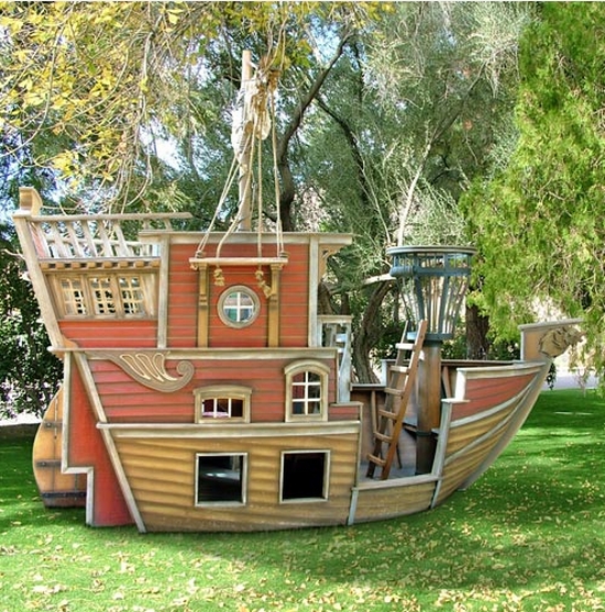 酷吧?接下來,還有「紅鬍子船長海盜船」,這個是一套已經是比大人身高還高、給美國人安裝在後院的遊戲組,小朋友可以爬進去,有甲板,有船艙,還有瞭望臺,整個就像一個小小的房子,還有好像可以張開的巨大的風帆,整台船隻以木板打造,幾可亂真,爬上去可能真的可過過當海盜船長的癮,這個產品可以依您的需求量身訂造,一艘造價5萬2千美元(170萬台幣),這筆錢是還不夠買一艘真正可在海裡跑的大船,但買一台高級車,已經足足有餘。