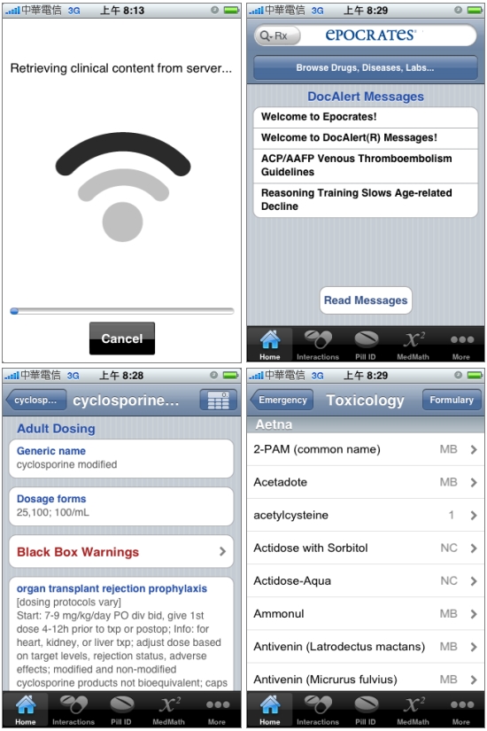 這個app叫做Epocrates Rx,讓醫生們可以查看用藥的正確劑量、副作用,以確保用藥正確,號稱已有3300個以上的藥品牌,並且可以一次檢查30種藥的交互副作用,還可以形容每種藥的大概長相與上面印的號碼。他們還有付費版版本的,「Epocrates Essentials」二年要249美元,一年要149美元。
