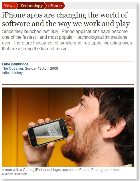 不過,我們真的期待的iPhone所做的,其實不完全是遊戲。如果iPhone只是「隨手可玩的遊戲」,那就沒有什麼新意了。這周末有另一篇關於iPhone應用程式的報導吸引了我,給了我們一些新的想法──-