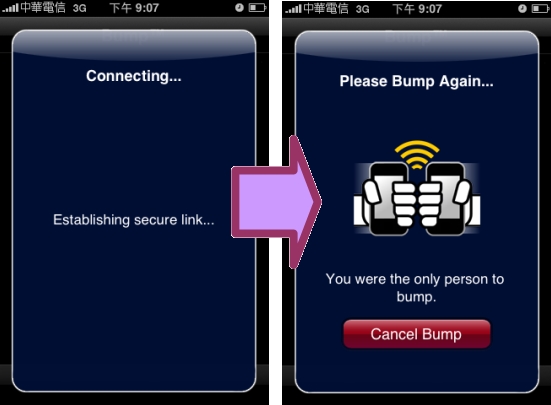 我想不是Bump啟動藍芽就是利用簡訊或基地台信號來傳資料…