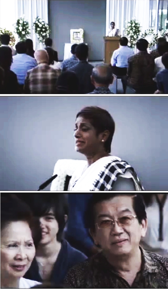主角是一位印度裔太太,悼念著她剛死去的華裔老公。她的悼詞和大家預期不同,她竟然當著全體親友描述著她老公在床上如何的「打鼾」和「放屁」,還當場模仿這些聲音!如果老公還活著,應該會窘得想找一個洞鑽吧。