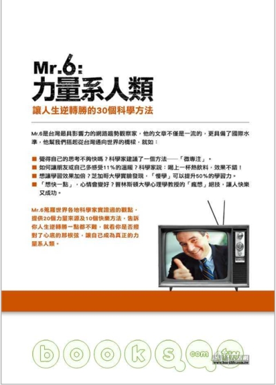 最近書架上悄悄出現一本新書,《Mr.6:力量系人類──讓人生逆轉勝的30個科學方法》。這本書低調但有後勁,我在出版後兩周的今天才寫這篇自推文,但《天下》雜誌網站已先選錄在此,目前已是熱門文章排行榜第一名。