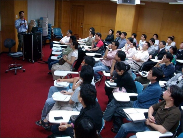 Andy一上台面對坐滿的觀眾席,先從地圖日記創辦的初始開始講起。其實也就只是兩年又一個月前的事情而已!當時是Andy剛離開美國Yahoo!回到台灣的時候,那時候一面在找工作,卻找不到好的工作,很悶的情況下,就和許多上班族一樣,就決定要「再唸個MBA」!那時候就到南陽街補習GMAT,此外,為了繼續保持寫程式的感覺,特地再去買了兩本書,一本是PHP 5.0,一本是MySQL Performance,然後又想,假若看這些書只看不寫,就像Andy以前當兵的時候在紙上學寫程式一樣不實際,所以就開始做些project;就在在不知道要寫什麼程式下,然後,在剛好聽了UrMap卓總經理(是他們Sweet100第二位講者)的演講的隔天,他坐在忠孝西路Starbucks的窗外落地窗,看到外面很多的人走來走去,他就突發靈感,如果有個東西,能把大家的「時間空間故事」記下來,應該很好!於是,Andy就很快「寫」出了地圖日記。當然,此日記不是日記而是「地圖日記」網站。