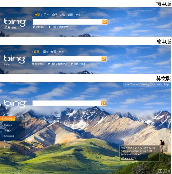 本來就不認為BING一下子會把中文給搞定,君不見Windows 7也是先釋出英文RC版,再釋出繁體中文套件嗎?搜尋引擎是很需要時間抓資料並且分析建檔的,更何況網頁每天是以多少頁的速度在增加?