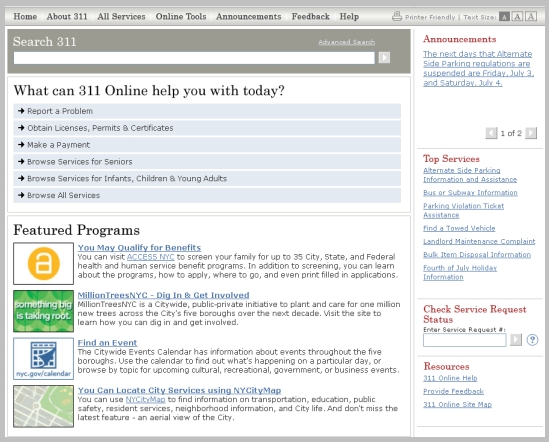 而且,在這消息宣布的同時,紐約市政府已經先宣布了他們請人開發的第一個「應用外掛」(APP),這個「APP」叫做「311」,紐約市有一個市民電話叫「311」,愈來愈忙,但他們不希望加人,所以就開了一個「311 Online」,並且加入了Skype、Twitter的介面(他們Twitter帳號在「311NYC」,目前才剛剛開已有276個follower),希望以後民眾不要再打電話,可以直接透過網站,或透過Skype打電話(在國外也可打),或直接用Twitter傳140字過來……這樣的話可以幫政府砍一些人力成本,據說一年可以省下400萬美元(台幣1.5億)!另外更有趣的是,紐約市也和Google公司合作,定期從他們那邊取得所有關於紐約市的搜尋狀況,看看使用者到底都在搜尋紐約的什麼,他們有沒有找到他們想要的東西等等。