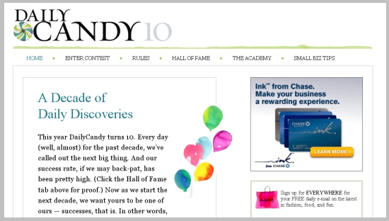譬如,一直做的很好、很賺錢的電子報「DailyCandy」,這星期也為了慶祝它的十周年慶,推出了一場行銷活動,而這場行銷活動,竟然是一場叫「Start Small, Get Big」的「創業大賽」──