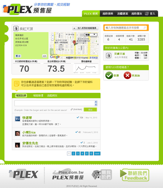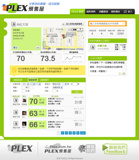 我們不同於現有的一般不動產網站,因為現有的房屋網站只是一昧地將預售屋的簡單資料放上去,也不去確認正確性,完全都是以建商的角度為出發點,只會放建商給的簡單資料,當然沒有網友會有興趣使用。PLEX預售屋網的做法完全不同,將大部份現有的網站概念翻轉過來,不再以建商為主,而是一個以購屋民眾的想法為主軸,將購屋民眾從看屋、記錄、比價、詢找同好、問問在地人意見等,全部轉到網站上來,真的是要解決購屋民眾的問題,方便購屋民眾查想要的資料,更重要的是,全部都是真的網友提供的資料,沒有建商介入,購屋民眾才能放心的記錄與比較,不會超乎市場行情的不合理價格買下房子。