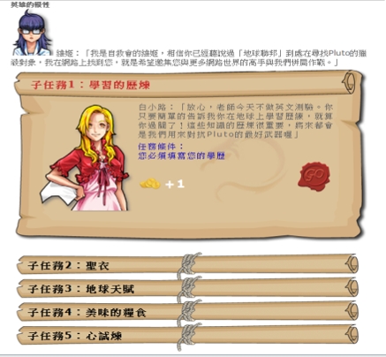 此外,除了遊戲社群的功能外,因為來「英雄部落」的使用者的共通點都是遊戲,「英雄部落」針對個人提供英雄任務小遊戲,玩家可以接受由網站提供的各種有趣的遊戲或是心理小測驗,讓玩家可以透過完成裡面的任務來獲取報酬與樂趣。
