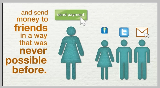 二、「新河道革命」搭著最新「網路流量」趨勢,跟著產生新河道:看看Dwolla這個「誰都能做」的點子,它的主要的未來性,還是在新的「通路」上,所謂新的通路在金流來說就是可以繞過現有的購物網站已在的機制,新闢一個「付費方法」。其實,「新河道革命」是搭著「網路流量」的順風車,人家PayPal當初首創「寄錢給朋友的email信箱」或「寄錢給朋友的電話號碼」,今天Dwolla則首創「寄錢給朋友的Facebook帳號」,你會看到你的牆上有一句話:「有一位朋友要付你錢」,進去之後就開始申請Dwolla帳號,以收到這筆款項;交易原本是私人之事,但透過公開的塗鴉牆貼文,竟然讓所有朋友都看到,而這筆錢已在Dwolla是事實,所以大家討論之後,很有可能一大群一起去申請Dwolla。接下來Dwolla也會做到手機付費,這塊就是之前大家在炒的,它意圖取代許多廠商在喊的NFC付費。