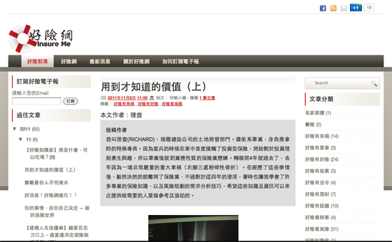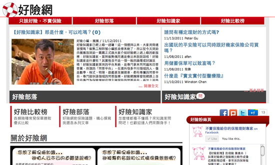目前,我們漸漸擴充的服務有兩個:好險部落與好險知識家,好險部落會定期刊登消費者保險相關的文章,我們透過寫稿,邀稿與徵搞廣收大家對保險的看法與教學,在好險部落中公布出來。