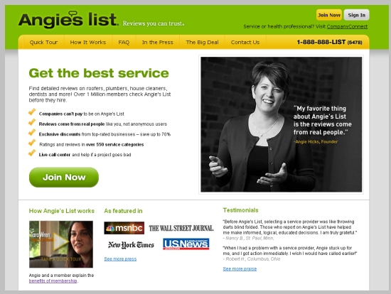 原來,Angie’s List最大的不同,是它竟然要求「必須付費,才能看內容」。換句話說,你來Angie’s List評點一番,紓發一下某某服務商的「好」,或某某服務商的「爛」,竟然還要「付費」之後,才能為之!付費之後,評點之後,當然也可以看看其他人的評點,從此之後,你所用的、你所聘的、你所請的所有的服務商,都會是最棒的,絕對沒有問題!