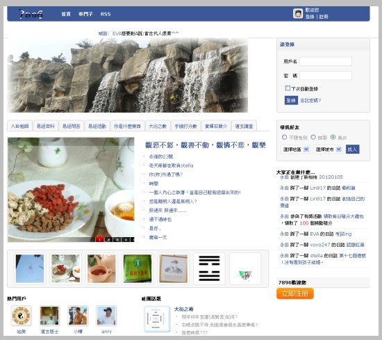 7896社群網站是為擴大發揚八卦祖師【易經】文化所設立的平台,這個平台是未來的趨勢,它所能結合的空間是無限的,它是生活的一部份,也是精神糧倉,更是身、心、靈提升的一個園地,它需要 !大家的耕耘與灌溉,我們期待它的成長,根深固蒂,長生久視。敬邀同好加入。