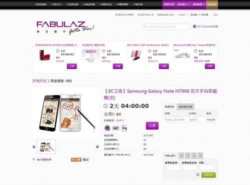 由亞洲科技創投基金及美國矽谷天使投資人共同出資設立的Fabulaz樂市亞太,正式於2011年12月25日投入台灣競標市場,不同於國內其他競標網站,Fabulaz是台灣第一家主打時尚精品的競標、商城二合一複合網期望將國外競標最新模式引進台灣市場,並且開發精品、女性等競標新族群。