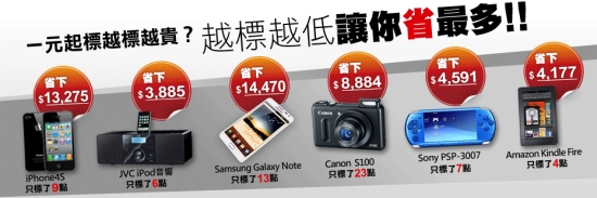 1. 四折下殺、零元搶標 – 1元起標不稀奇,因為錢多的就贏了!