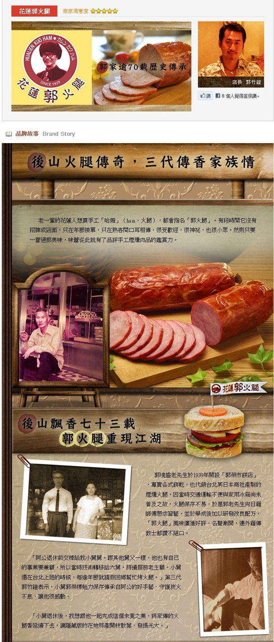 每一個商品的品牌故事,都有深刻動人的真實故事,商品有歷經百年五代傳承的、有三代傳承的、有子承父志習藝30年後開店圓夢的、有通過老爸嚴格考驗要求天然健康還要照顧農產品才得以營業的、有以水果王國為原料素材的、有古法新創的、有復刻兒時甜美記憶的,有孤獨研發永不止息邁向無限創意的,舉凡從產品原料的精選,保持新鮮,以純天然手作不含化學添加物,製作過程的品管嚴謹,品質保證,都是用心良苦,包括看似簡單的固定流程、都要歷經數小時甚至數十小時的環環相扣,耗時費工,產品的背後有無比的用心與堅持,更有融入無比愛心情感,才能展現傳統的技藝與美好,不僅口感精緻,更是充滿品味,也才能口耳相傳,代代傳承。