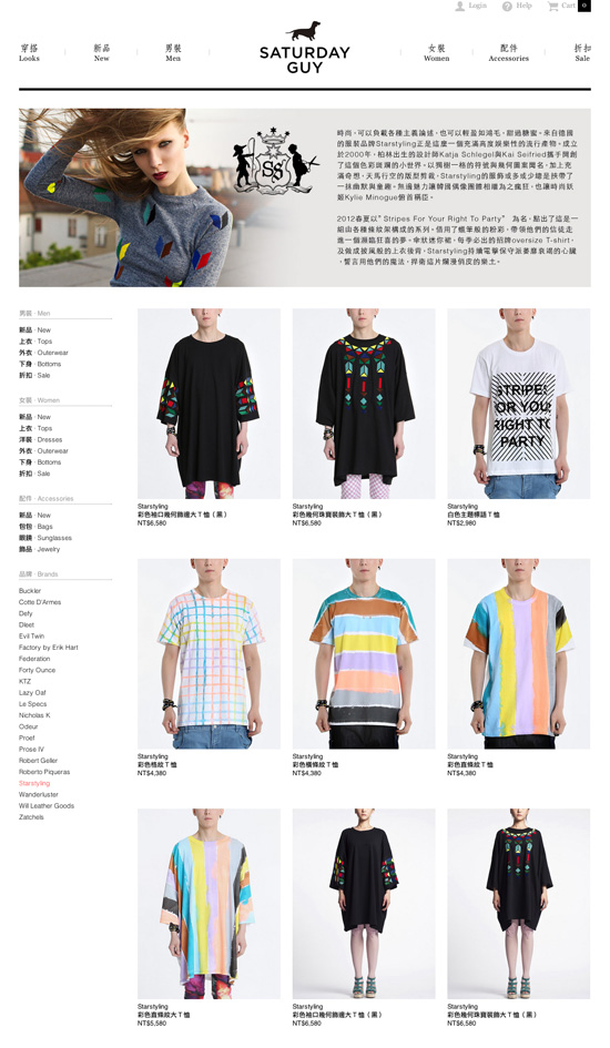 回頭來看台灣的服裝網拍現象,市場成熟,商品選擇卻是千篇一律的韓版或韓貨,如今雖有國際平價品牌接連登台,並引起一波波排隊搶購的熱潮,卻仍然無法滿足對於商品質感、獨特性和多樣化有所要求的時尚迷。你是否也正在尋找可以表現自己獨特品味的選項呢?SATURDAY GUY在本季一口氣帶來了二十一個時尚迷無法錯過的品牌,其中還包括了討論度極高的台灣設計師。以下就先為你重點介紹一些精采新選擇 ──