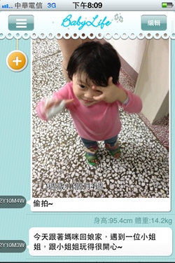 寶寶的成長是如此精采豐富,但也稍縱即逝,我們希望透過 BabyLife,讓爸媽們可以輕鬆地用一支手機來記錄寶寶的成長故事、掌握寶寶的生長狀況。更多關於 BabyLife 的資訊,請見我們的網站,或是我們的臉書粉絲團。若大家對於 BabyLife 有任何的建議,歡迎隨時與我們聯絡;BabyLife,跟寶寶一樣每天努力的成長 : )