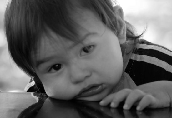 結果,這個小女娃,竟然直接伸手去扯地毯,拉地毯到她的身邊,也順便取得了她心愛的玩具──她一步都不必爬,就拿到了那個玩具!