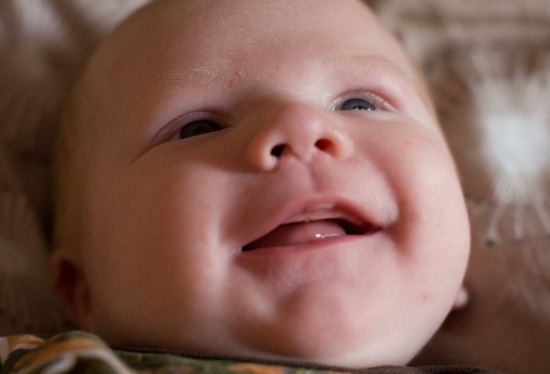 我再想起,自從有了孩子,我們發現,每當大人看到我們家小寶寶在笑,大部份的人自己也都會不由自主的開始笑。很奇怪喔!我帶著我們家一歲九個月大的瀛瀛出門,他又是特別喜歡對別人笑,我們觀察到,長得再恐怖的彪型大漢都會跟著笑,連玩得一身泥的小學生也會跟著笑…他們笑的時候一點也不造作,好像花兒開、雲兒飄,然後我們又發現,當我再次看到一個曾經看過的小寶寶,他在笑的時候,我會更熱情的笑,笑得有如相識五十年的老朋友。