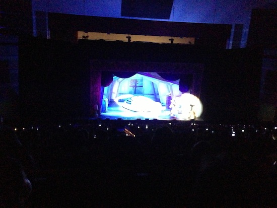 熟悉的迪士尼樂聲,孩子都好興奮地摒著氣息,專心的看著舞台上,這時候,我發現「舞台附近」,似乎有些地方,不太對勁!