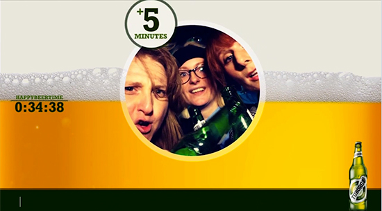 在這些酒吧,酒客們都忙著邊喝Carlsberg 嘉士伯啤酒邊拍照上傳到Instagram,因為現場只要一直都有人拍照上傳並標籤#HappyBeerTime 還有酒吧的名字,就會一直加可以用特價購買Carlsberg 嘉士伯啤酒的Happy hour時間,照片也會即時動態出現在酒吧的電視上,和現場的酒客同樂,